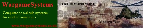 Welcome to the WargameSystems Web site - the home of eRules World War II, eRules Modern War and other software products for serious wargamers. We would like to offer you useful tools and products to help you enjoy your hobby.