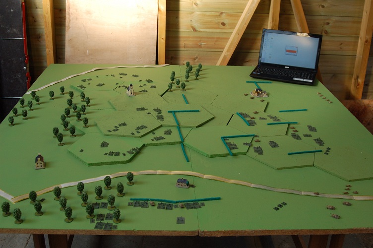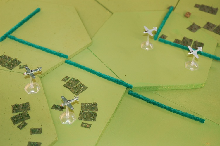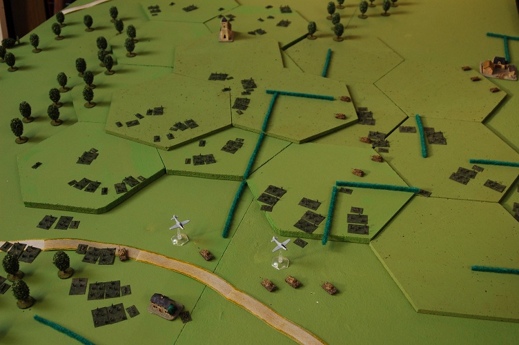 10 preparatory fireblow missions each by four fighter-bombers, starting at bound 2 and repeating every other bound. (eRules allows a maximum of 10 air support missions, so this is the best that can be done to represent several hours of continuous air cover.)